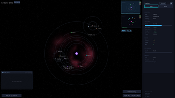 Galaxies contain multiple star systems with planets and moons that orbit in real time. Each system is generated with unique resources, mining difficulty and naming conventions for a handmade feel without repetition.