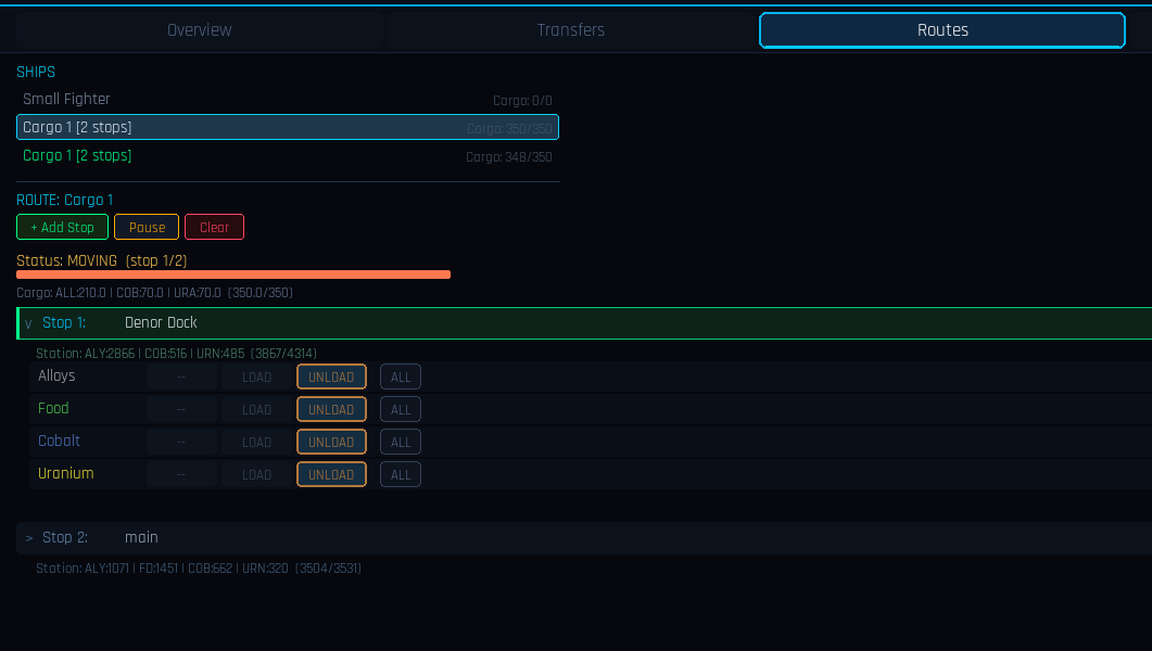 Routes are useful for moving large quantities of resources to and from stations. Route creation is also entirely dynamic allowing playing to establish in-depth multi-stop routes. I am very excited to see what players make with these new systems!